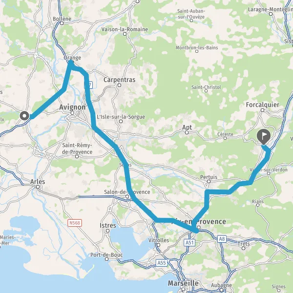 Au rond-point, prendre la 3ème sortie sur D900 (Route d'Avignon) et continuer sur 9,3 kilomètres