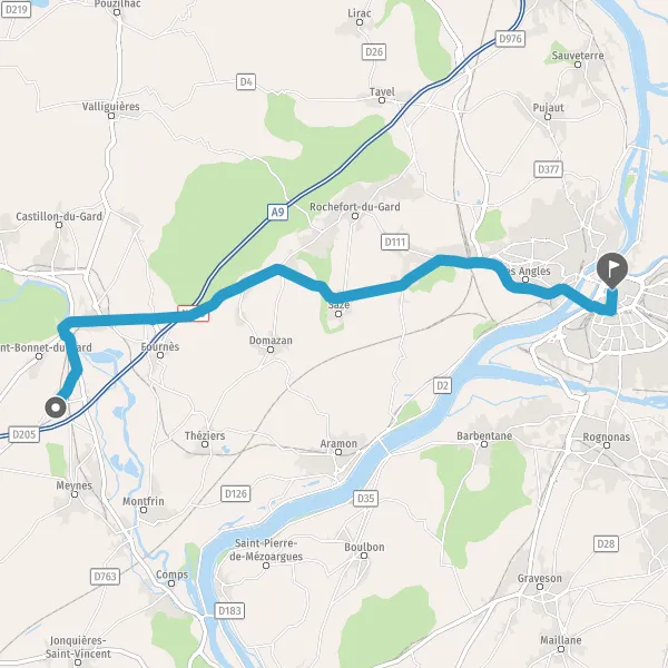 Prendre à droite et rejoindre D6086 (Avenue du Pont du Gard). Continuer sur 280 mètres