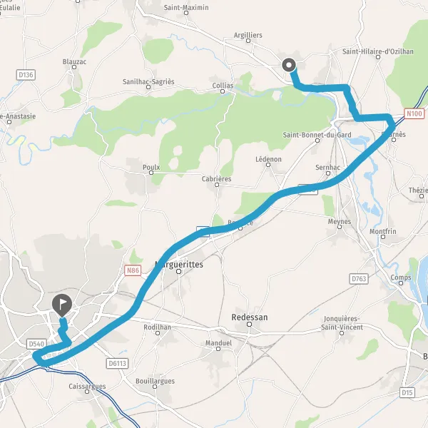 Continuer D6086 (Avenue du Pont du Gard) sur 10 kilomètres