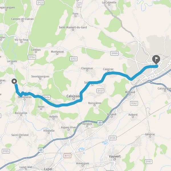 Tourner légèrement à droite sur D40 (Route de Nîmes) et continuer sur 1,3 kilomètre