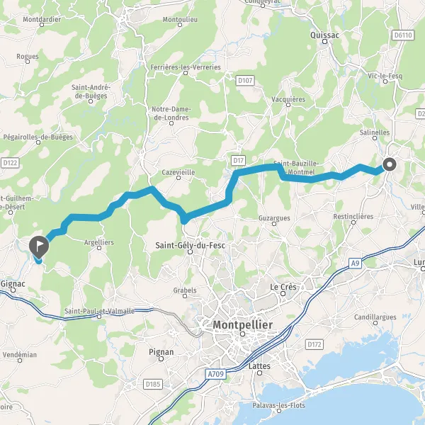 Au rond-point, prendre la 3ème sortie sur Avenue de Saint-Guilhem et continuer sur 300 mètres