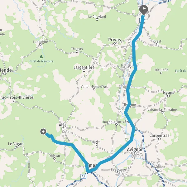 Au rond-point, prendre la 2ème sortie sur D982 (Route de Nîmes) et continuer sur 2,4 kilomètres