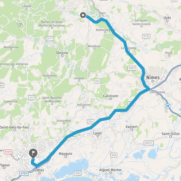Au rond-point, prendre la 2ème sortie sur D982 (Route de Nîmes) et continuer sur 2,4 kilomètres