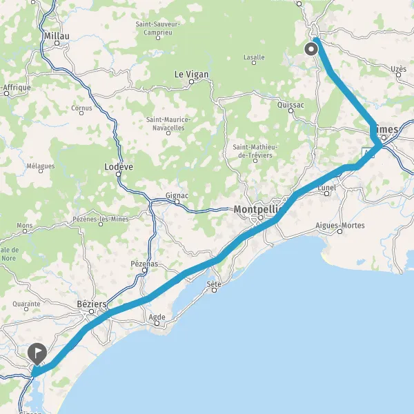 Prendre à droite et rejoindre A9 E15 E80. Continuer sur 32 kilomètres