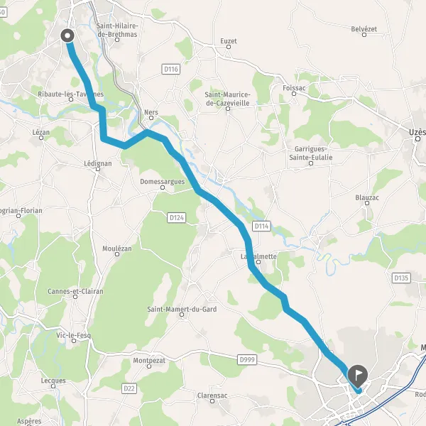 Au rond-point, prendre la 2ème sortie sur D982 (Route de Nîmes) et continuer sur 2,4 kilomètres