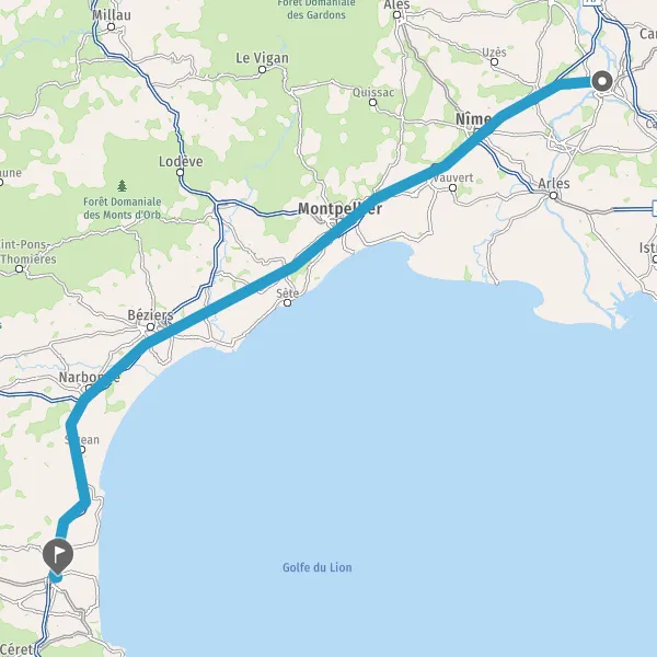 Tourner légèrement à droite sur N100 (Route Nationale de Montpellier à Avignon) et continuer sur 2,1 kilomètres