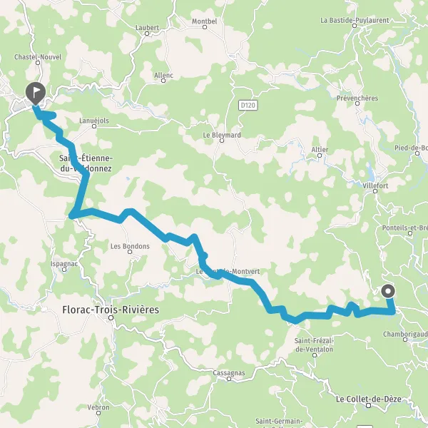 Tourner légèrement à gauche sur D998 (Route du Pont de Montvert) et continuer sur 7,5 kilomètres