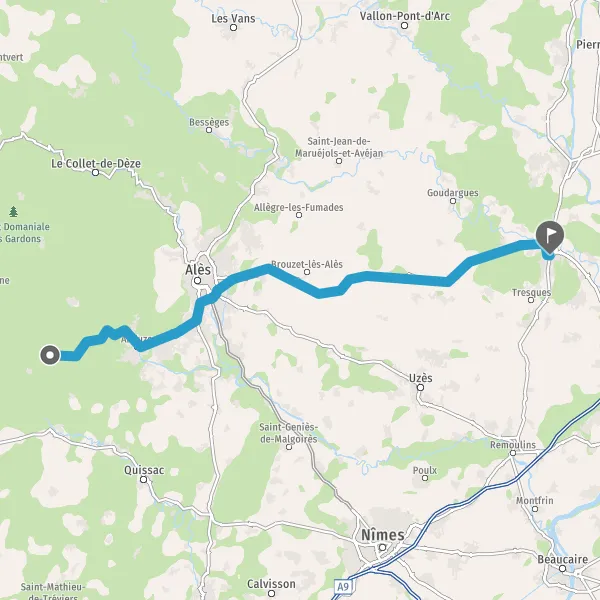 Tourner à droite sur D6 (Route d'Alès) et continuer sur 13 kilomètres