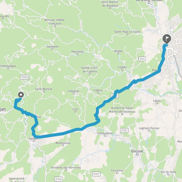 Tourner légèrement à droite sur D11 (Route de Ganges) et continuer sur 4,2 kilomètres
