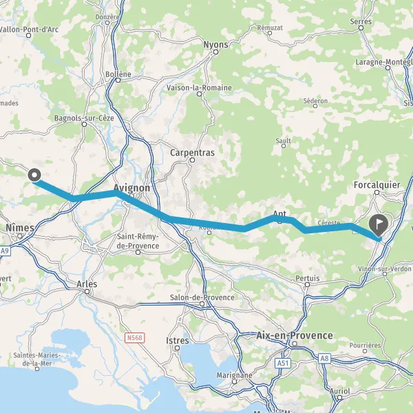 Au rond-point, prendre la 3ème sortie sur D900 (Route d'Avignon) et continuer sur 9,3 kilomètres