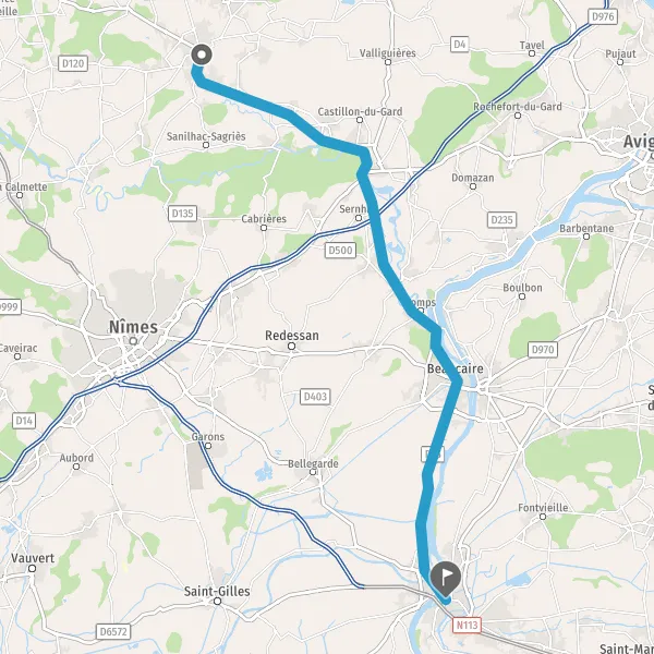 Au rond-point, prendre la 3ème sortie sur D15 (Avenue de Beaucaire) et continuer sur 1,3 kilomètre