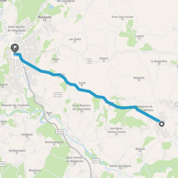 Au rond-point, prendre la 2ème sortie sur D981 (Route d'Alès) et continuer sur 5,1 kilomètres