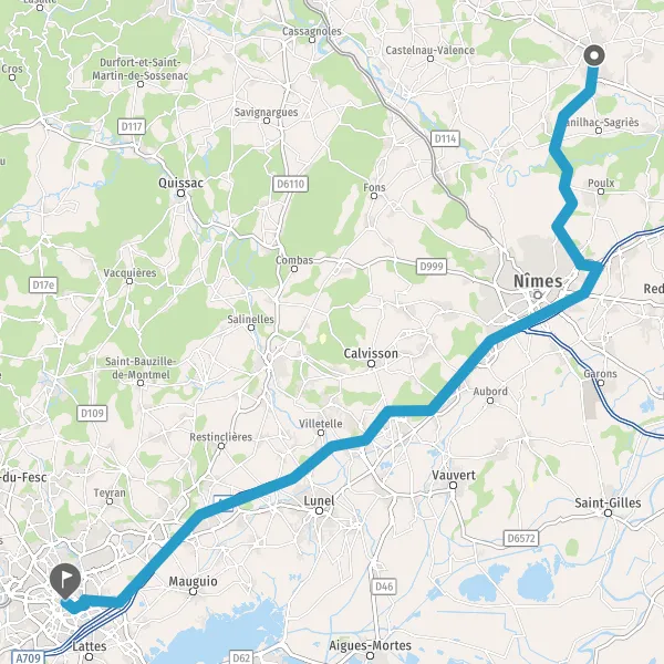Au rond-point, prendre la 2ème sortie sur D979 (Route de Nîmes) et continuer sur 16 kilomètres