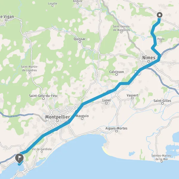 Prendre à droite et rejoindre Pénétrante de Sète. Continuer sur 160 mètres