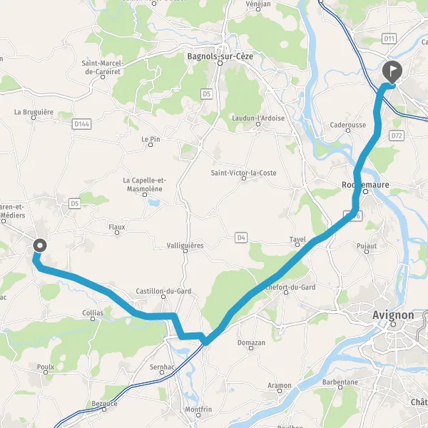 Au rond-point, prendre la 2ème sortie sur D19 (Route de Remoulins) et continuer sur 550 mètres