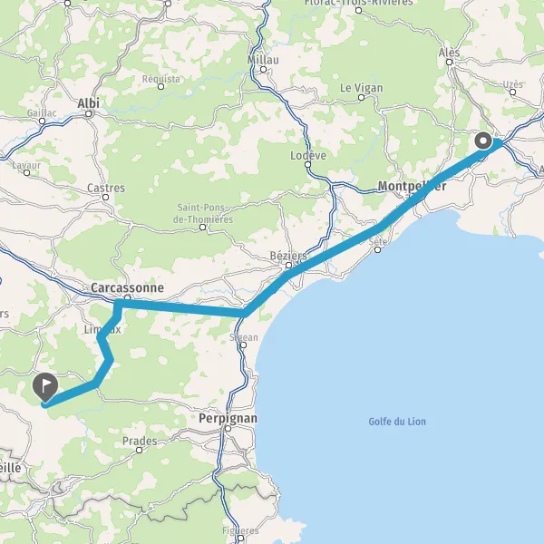 Prendre à droite et rejoindre A9 E15 E80. Continuer sur 32 kilomètres