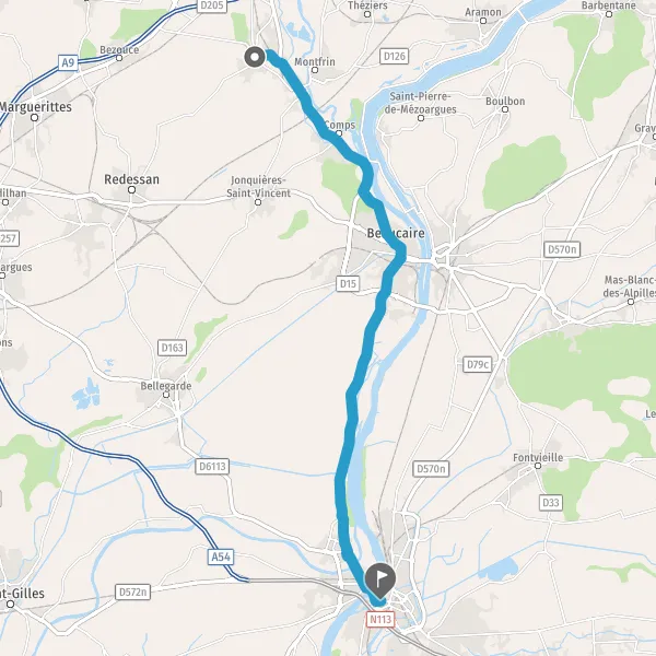 Au rond-point, prendre la 3ème sortie sur D15 (Avenue de Beaucaire) et continuer sur 1,3 kilomètre