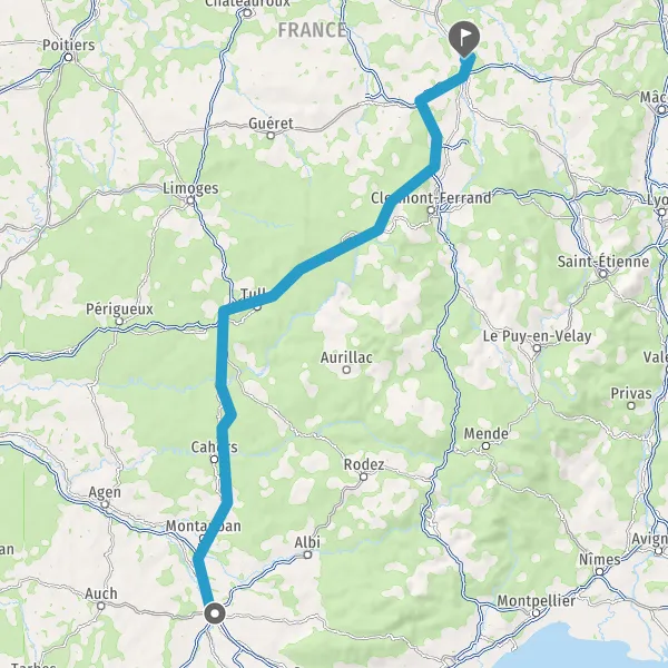 Prendre à droite et rejoindre A79 E62. Continuer sur 37 kilomètres