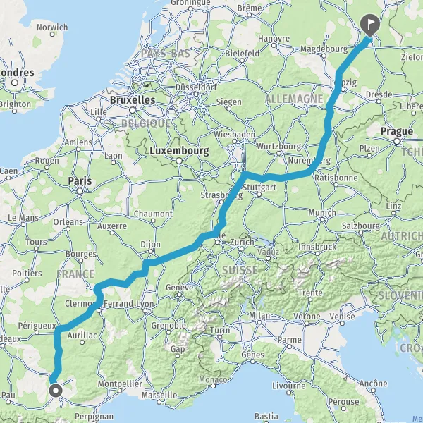 Prendre à droite et rejoindre A36. Continuer sur 236 kilomètres