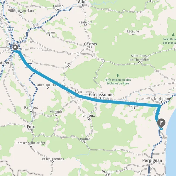 Prendre à droite et rejoindre A9 E15. Continuer sur 14 kilomètres