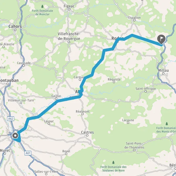 Au rond-point, prendre la 3ème sortie sur N88 (Route de Laissac) et continuer sur 32 kilomètres