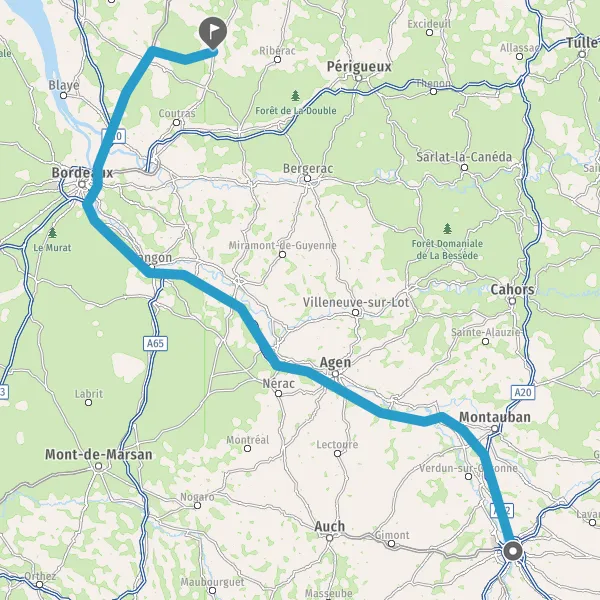 Prendre à droite et rejoindre A62. Continuer sur 33 kilomètres