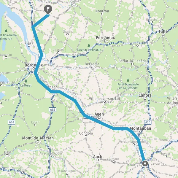 Prendre à droite et rejoindre A62. Continuer sur 33 kilomètres