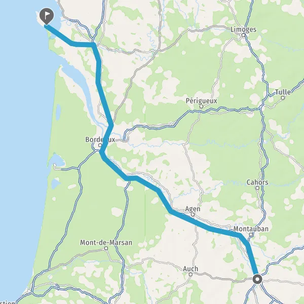 Prendre à droite et rejoindre A62. Continuer sur 33 kilomètres