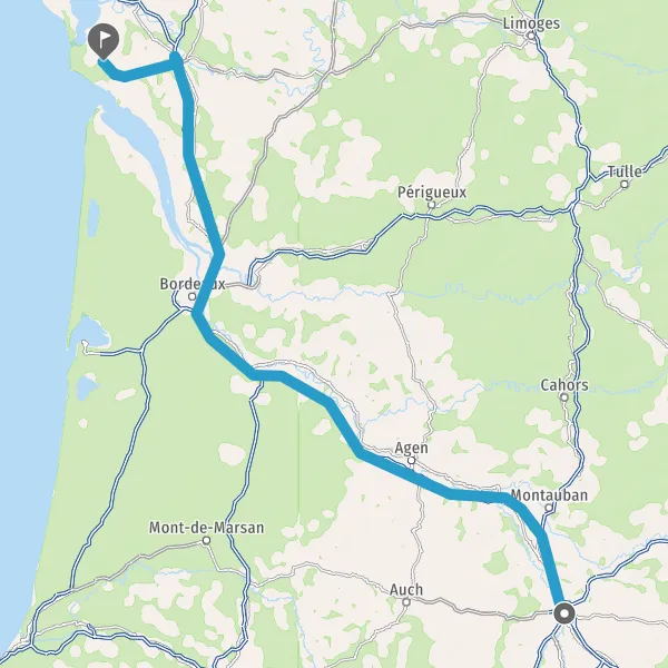 Prendre à droite et rejoindre A62. Continuer sur 33 kilomètres