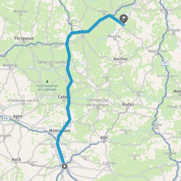 Prendre à droite et rejoindre A62. Continuer sur 33 kilomètres