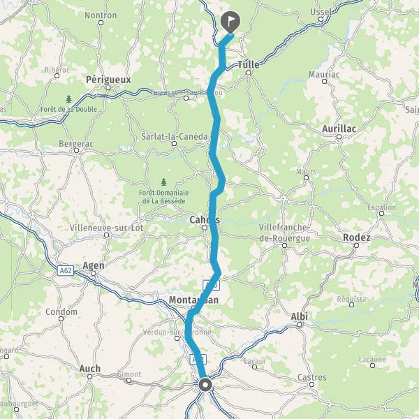Prendre à droite et rejoindre A62. Continuer sur 33 kilomètres