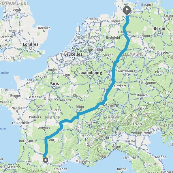 Prendre à droite et rejoindre A36. Continuer sur 236 kilomètres