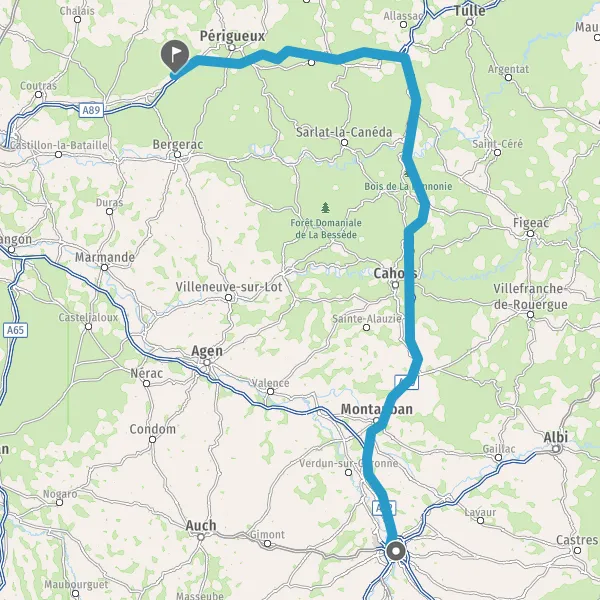 Prendre à droite et rejoindre A62. Continuer sur 33 kilomètres