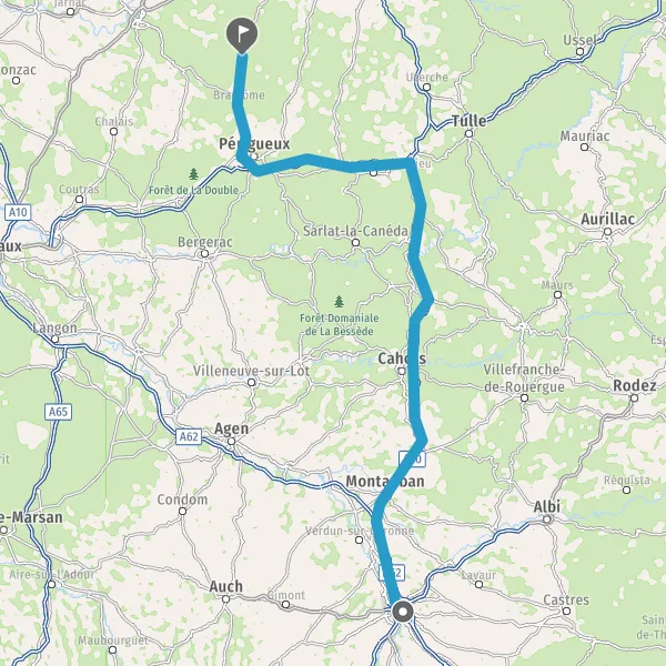 Prendre à droite et rejoindre A62. Continuer sur 33 kilomètres