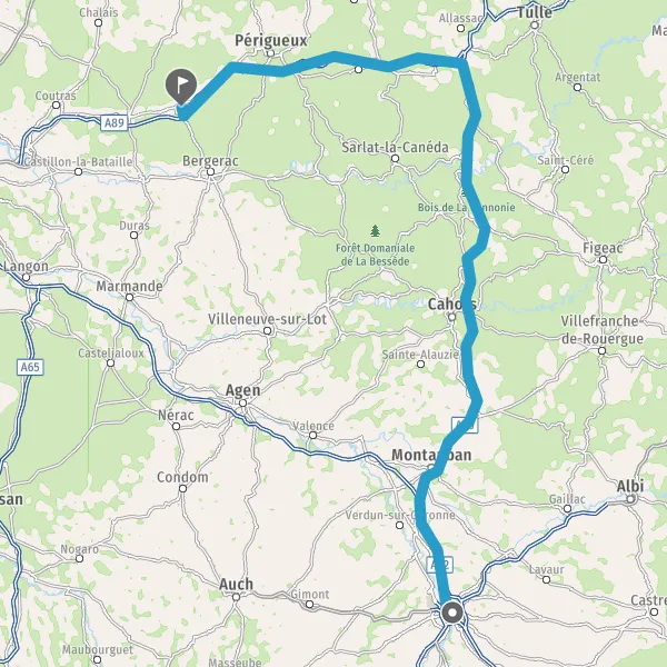 Prendre à droite et rejoindre A62. Continuer sur 33 kilomètres