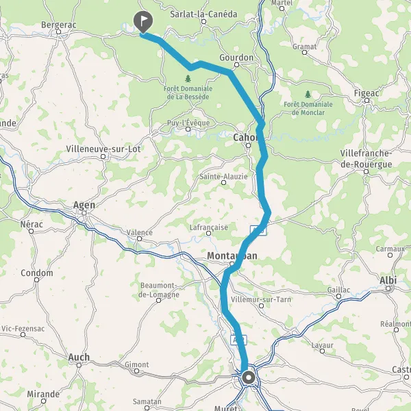 Prendre à droite et rejoindre A62. Continuer sur 33 kilomètres