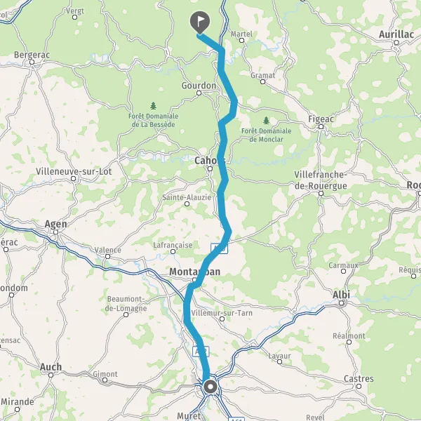 Prendre à droite et rejoindre A62. Continuer sur 33 kilomètres