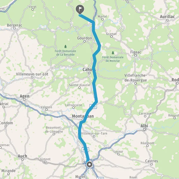Prendre à droite et rejoindre A62. Continuer sur 33 kilomètres