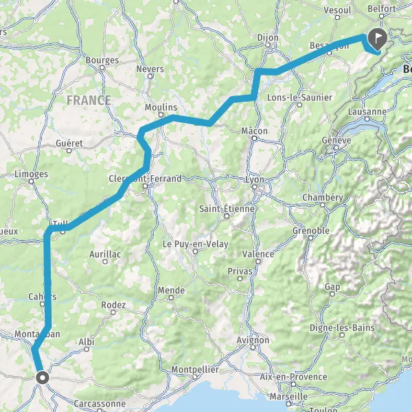 Prendre à droite et rejoindre A36. Continuer sur 143 kilomètres