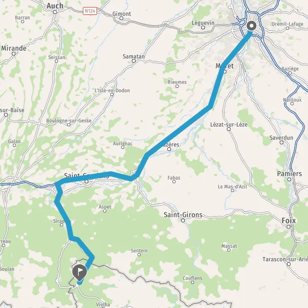 Au rond-point, prendre la 3ème sortie sur D825 (Route de Luchon) et continuer sur 1,9 kilomètre