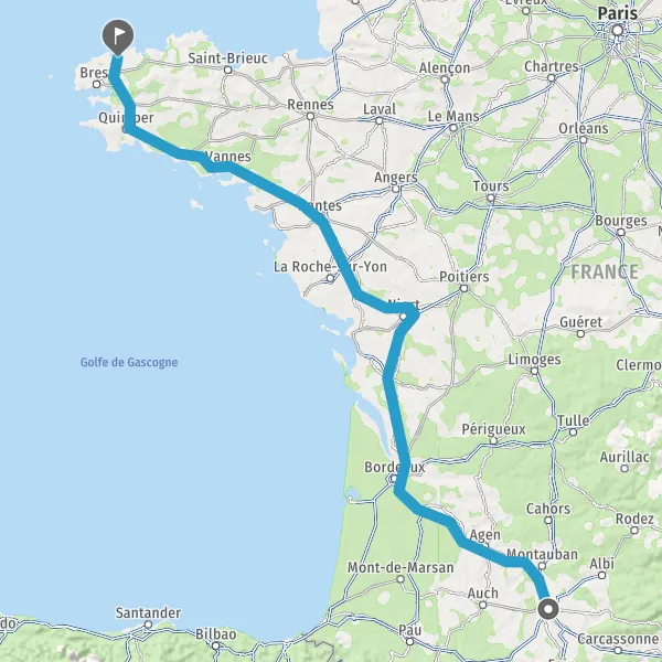Prendre à droite et rejoindre A83. Continuer sur 150 kilomètres