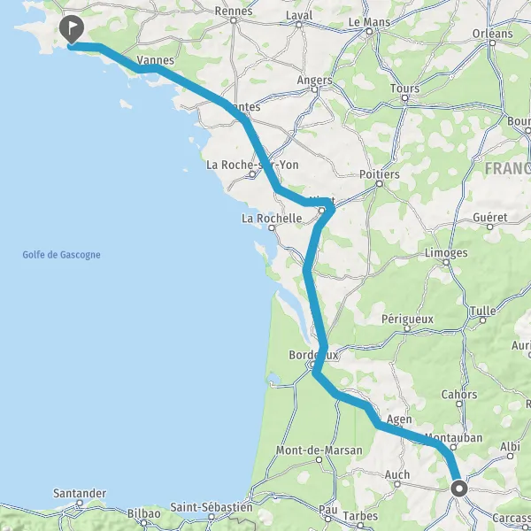 Prendre à droite et rejoindre A83. Continuer sur 150 kilomètres