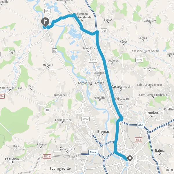 Tourner légèrement à droite sur D2 (Route de Toulouse) et continuer sur 4,5 kilomètres