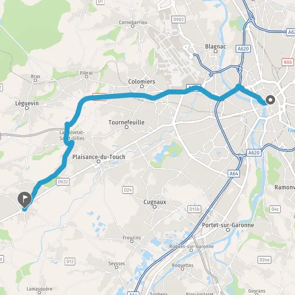 Au rond-point, prendre la 2ème sortie sur D632 (Avenue de Lardenne) et continuer sur 2,7 kilomètres