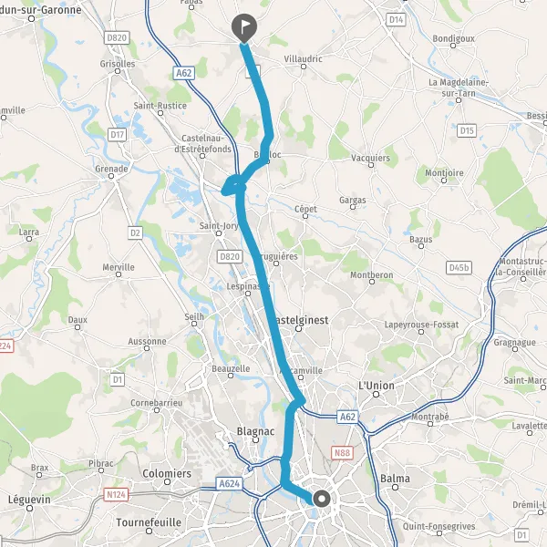 Prendre à droite et rejoindre A620. Continuer sur 4,7 kilomètres