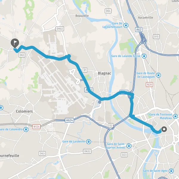 Tourner légèrement à droite sur D1 (Route de Blagnac) et continuer sur 750 mètres