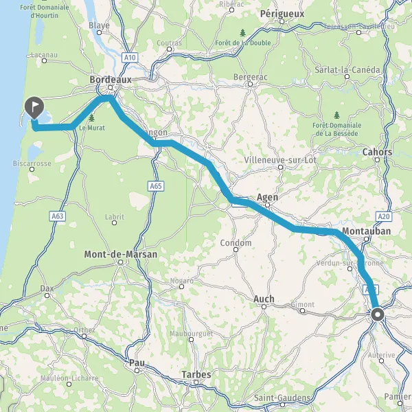 Prendre à droite et rejoindre A62. Continuer sur 33 kilomètres