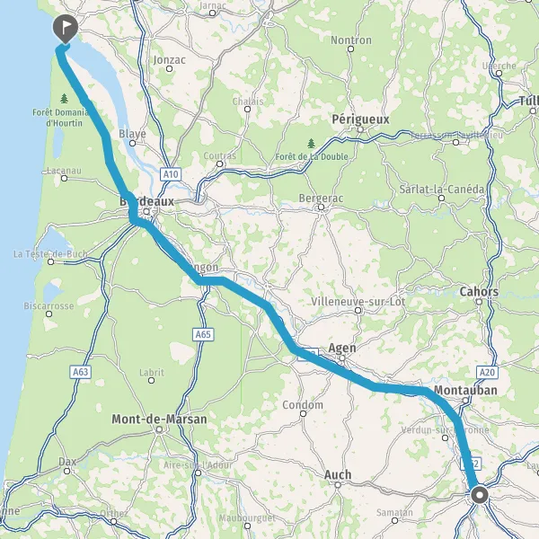 Prendre à droite et rejoindre A62. Continuer sur 33 kilomètres
