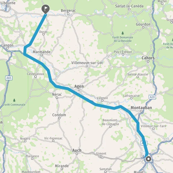 Prendre à droite et rejoindre A62. Continuer sur 33 kilomètres