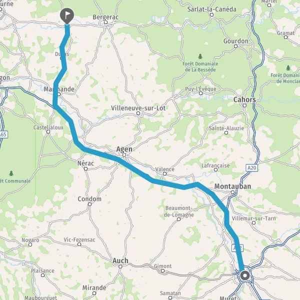 Prendre à droite et rejoindre A62. Continuer sur 33 kilomètres